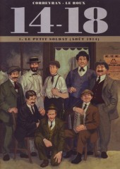 Huit amis d'une trentaine d'années natifs du même village dansent lors d'une guinguette le 1er Août 1914. Certains draguent la belette, d'autres taquinent le goulot et d'autres plus ombrageux jouent des poings. Alors, en ce jour de festivités, la mobilisation générale cueille nos amis Louis, Jacques, Armand, Denis, Arsène, Maurice, Jules et Pierre et les affecte tous dans le même régiment d'infanterie. Désormais nous assistons à leur départ, aux premiers combats et aux premiers heurts avec la hiérarchie militaire. Tous reviendront-ils sains et saufs de quatre années de conflit ? Une nouvelle série dessinée par l'auteur de "la mémoire dans les poches" et scénarisée par Corbeyran qui nous narre le destin de huit petits soldats au coeur de la "grande guerre". A suivre. |
