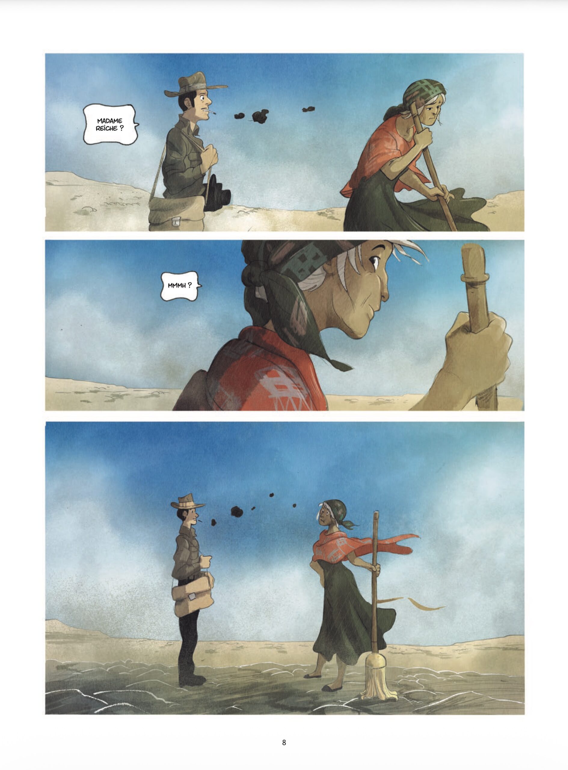 En 1935, à Lima au Pérou une jeune allemande vit tranquillement. Maria va accepter un travail de traduction proposé par un archéologue américain. Ce dernier – Paul Kosok – travaille sur les ancêtres des incas : les nazcas. Ce peuple communiquait beaucoup par le dessin. Ce qui amène nos deux protagonistes dans le désert pour étudier des figures au sol. Ces lignes gigantesques sortes de sillons sont constituées de pierres renversées ou déplacées. Maria Reiche mathématicienne de formation se trouve devant une énigme à résoudre. Commence alors une vie pleine de sacrifices uniquement dirigée par cette obsession : pourquoi ces lignes millénaires étaient-elles tracées ? Un album passionnant et intrigant. |