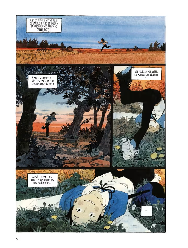 Othello est un gosse féru de nature et passionné par les oiseaux depuis tout petit. Avec son copain Ange à l’âge de dix ans, ils arrivent à rentrer pour leur plus grand bonheur dans le club très fermé d’ornithologie du collège. A la maison, la joie n’est pas au rendez-vous, les parents d’Othello se détestent désormais et se déchirent. Sa mère va l’utiliser pour récupérer un carnet auprès de son père et provoquer un grand malheur. Cet album est un récit tendre et merveilleux. « Terre ou Lune » est à la fois un hymne à la nature et une ode aux oiseaux, un récit familial bouleversant un peu dans l’esprit de Craig Thompson et un récit d’anticipation lumineux qui plaira aux lecteurs de Leo. Constamment, l’histoire de ses parents est palpitante et pleine de rebondissements et, parfois elle laisse la place à des séquences silencieuses, contemplatives et aussi à des fulgurances oniriques. Jade Khoo maîtrise sa narration avec maestria et accouche d’une fable d’anticipation poétique, écologiste et initiatique. Un album absolument somptueux, éblouissant et puissant. |
